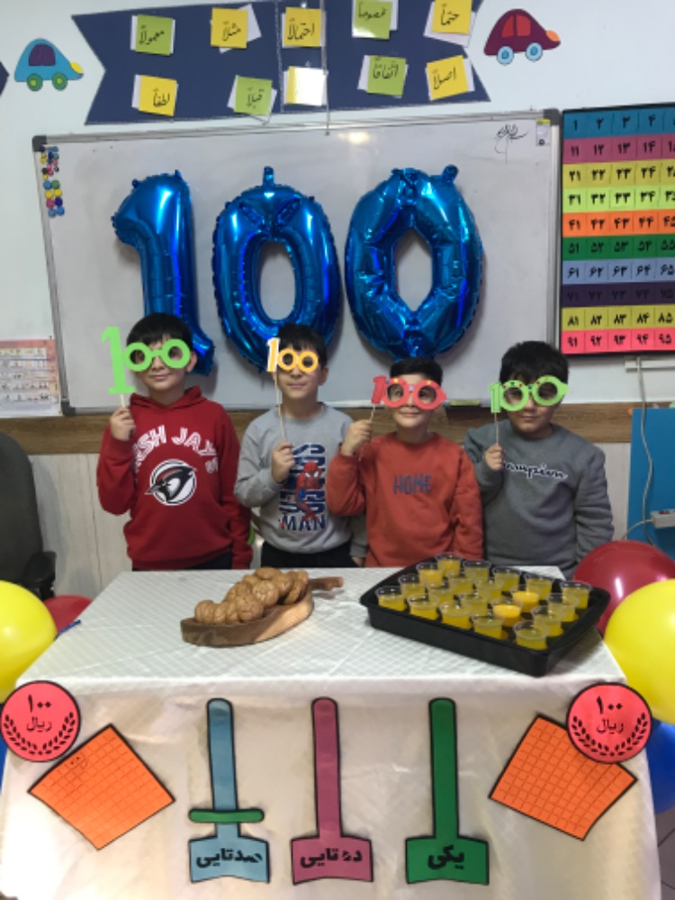 جشن عدد ۱۰۰جشن عدد ۱۰۰ برای دانشآموزان پایه دوم دبستان برگزار شد. بچهها با انجام فعالیتهای شاد و خلاقانه، رسیدن به عدد ۱۰۰ روز از سال تحصیلی را جشن گرفتند. این برنامه فرصتی بود تا دانشآموزان مفهوم عدد ۱۰۰ را بهصورت ملموس و جذاب تجربه کنند و در کنار دوستانشان لحظات پرهیجان و خاطرهانگیزی بسازند.